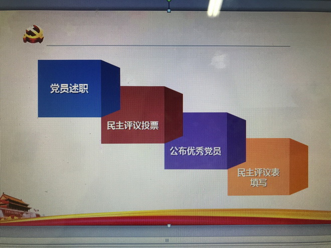 随后,党员们分文、理支部进行了党员民主评议,评议分为四个步骤,党员述职民主评议投票,公布优秀党员,民主评议表填写。