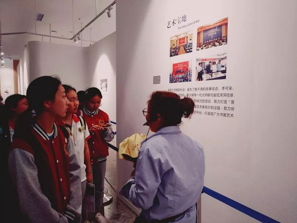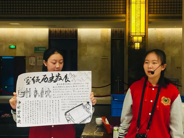 同学们展示夜见课堂上的宣纸制作流程画作。