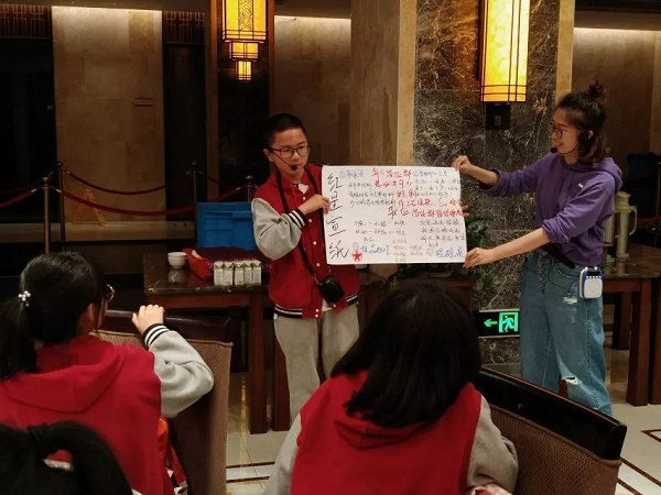 晚上的夜间课堂,同学们认真的完成研学手册,并对研学手册上的思考问题进行积极讨论,完成宣纸的制作步骤导图。