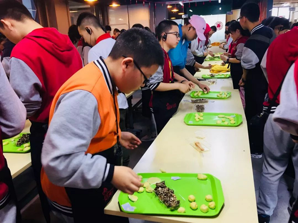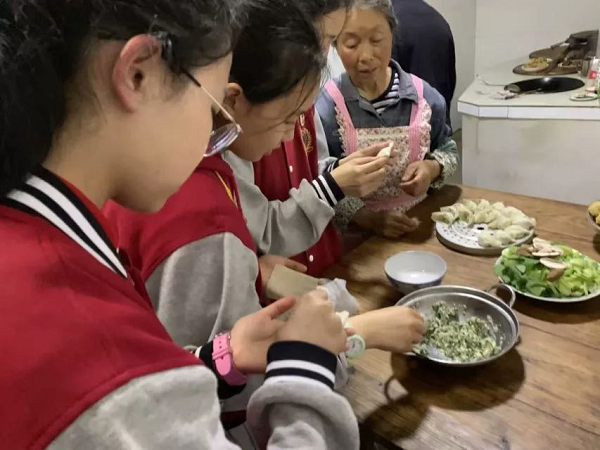 晚餐时间,同学们来到徽州当地农家,亲手包饺子,炒菜,一起准备丰盛的当地美食。