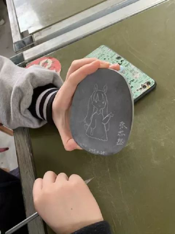 同学们亲手雕刻徽州砚台,了解徽州砚雕工艺,体会砚台制作的难度,体正如工厂墙上贴的一副字所言,“精益求精”,每一块墨的诞生,都是一份文化的沉淀。