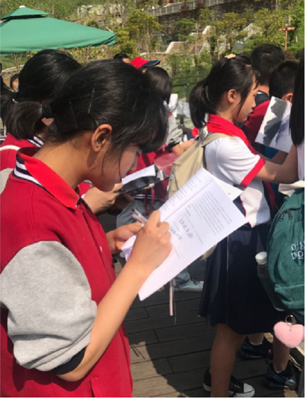同学们通过自然观察、自然体验、自然笔记等方式