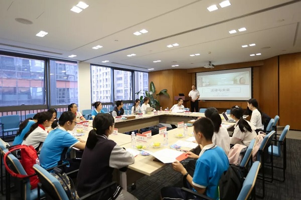 参观书院后,大家齐聚法律讲堂,发现律师事务所高级合伙人倪云主任为学子们带来了一堂《法律与未来》的特别课程。倪云主任从“法律是什么”、“法律职业类型描述”、“社会发展与法律变革”、“未来的你,需要今天做好的准备”四个方面向学子们传达了法律职业文化及特点。倪云主任的讲解深入浅出,通过“两个人如何分蛋糕才公平”这样简单而又具有哲学性的问题,启迪学子们思考什么是真正的公平正义。同时倪主任结合同学们刚参观的“枪口抬高一厘米”、“辛普森案”经典案例以及近期“垃圾分类”等相关热点问题生动地讲解了法律知识内涵及从事法律工作者需要的素养和精神。