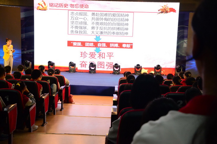 2020学部导师11班的郑何老师和全班同学,播放了“九一八”的历史记录片,让全部同学对这一段历史有初步的了解,接着用数据、图片展示了日本侵略者对我们祖国和人民的迫害,全班同学的沉重朗诵让天地都为之哭泣。接着郑老师播放了习主席在中国人民抗日战争胜利70周年纪念章仪式上的视频:“一个有希望的民族不能没有英雄,一个有前途的国家不能没有先锋。实现我们的目标,需要英雄,需要英雄精神。”是的,在网红、流量明星蔓延的当下,青少年不应该盲目去当“脑残粉”,而应该崇尚英雄,心怀中华。