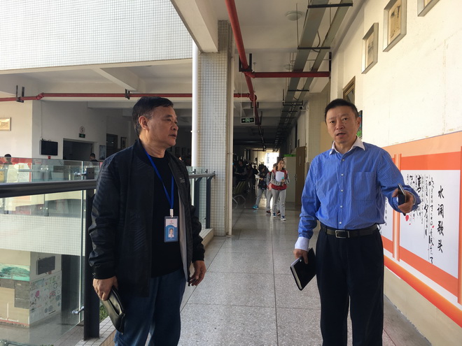 2019年9月25日,青羊区责任督学钟家强来到泡桐树中学,开展庆新中国成立70周年华诞之际,校园安全工作督导。