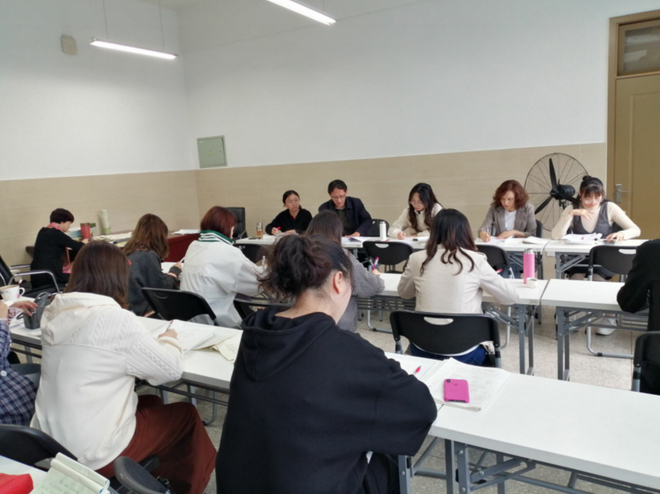 第七节课,老师们来到410进行评课,八年级老师先说课,听课教师再针对每位老师的优点和不足进行评价,老师们的评价精准到位,无论是新进教师还是经验丰富的老教师都有很多的收获。