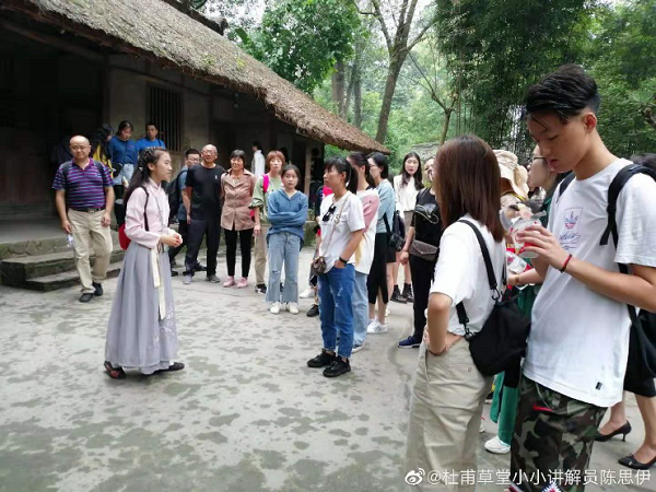 2018年底,经过2个月的准备,我考上了杜甫草堂的“双语讲解员”,对中轴线上的5处景点可以用英文与外国游客服务,每次去草堂讲解,我都希望多一些锻炼自己胆量和英文口语的机会。