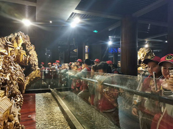 我们来到了神木园,园内亭台楼榭,曲径通幽;雕栋画梁,栩栩如生;神木馆乌木雕刻,技艺精湛,具有极高的艺术价值,充分体现了中华木雕文化的悠久、博大与精深,同学们纷纷惊叹大自然的鬼斧神工和现代雕刻工艺相结合的奇妙