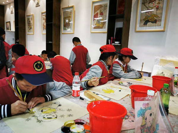年画研究所的老师傅教我们制作了年画的基本技术,同学们都很积极的学习,纷纷都有了自己的作品。