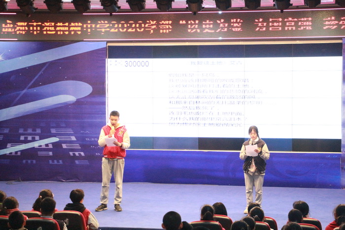 本次活动由导师2班承担。刘童、宋思睿两位主持人通过一段“南京大屠杀”的纪录片,让学生们了解历史,缅怀昨日,通过一个个惨不忍睹的伤忙数据,揭示了日本的战争罪行。接着导师2班全体学生声情并茂的诗朗诵《我爱这片土地》向全校师生演绎了一种刻骨铭心、至死不渝的最伟大、最深沉的爱国主义感情。