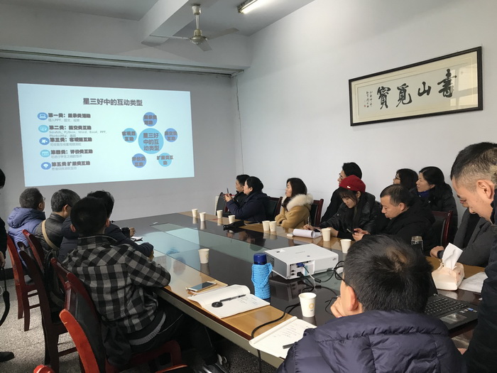 最后郭老师总结了近期工作,分享了成都市初中信息技术会考情况反馈、作了下学期教研工作安排计划、新教材培训事宜、青年教师展示课工作。最后,郭老师特地分享了前段时间举行的四川省优质课展评活动的专家评课和点评。