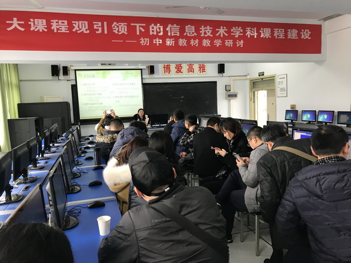 2019年12月16日,计算思维名师工作室一行赴十一中参加以《大课程观引领下的信息技术学科课程建设—初中新教材研讨》为主题教研活动。教研活动由青羊区教育科学研究院郭老师主持。郭老师从三个方面主持了本次活动。