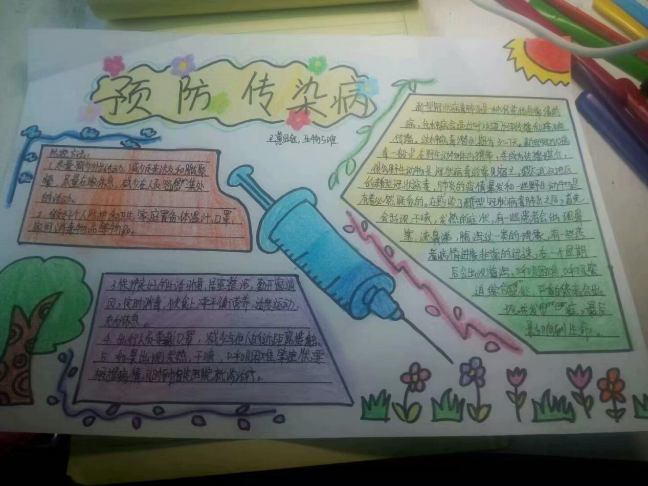 什么是传染病?什么是病原体?本次传播疾病的新型冠状病毒又是何方神圣?此病毒想要侵害人体需要突破哪些人体防卫关卡?在停课不停学期间,泡桐树中学生物组精心准备了以“新冠肺炎传染病”为主题的课程,内容包括:病原体与传染病、人体防控疾病的三道防线、特异性免疫与非特异性免疫等,并以水痘、流感、新型冠状病毒等学生耳熟能详的疾病或病原体为例,使课堂贴近生活并富有吸引力。课程完成后,学生们制作了关于“传染病防控”的宣传小报,在自身学习了传染病相关知识的基础上,结合艺术和创造力宣传防护知识,以下是本校同学们的部分宣传作品: