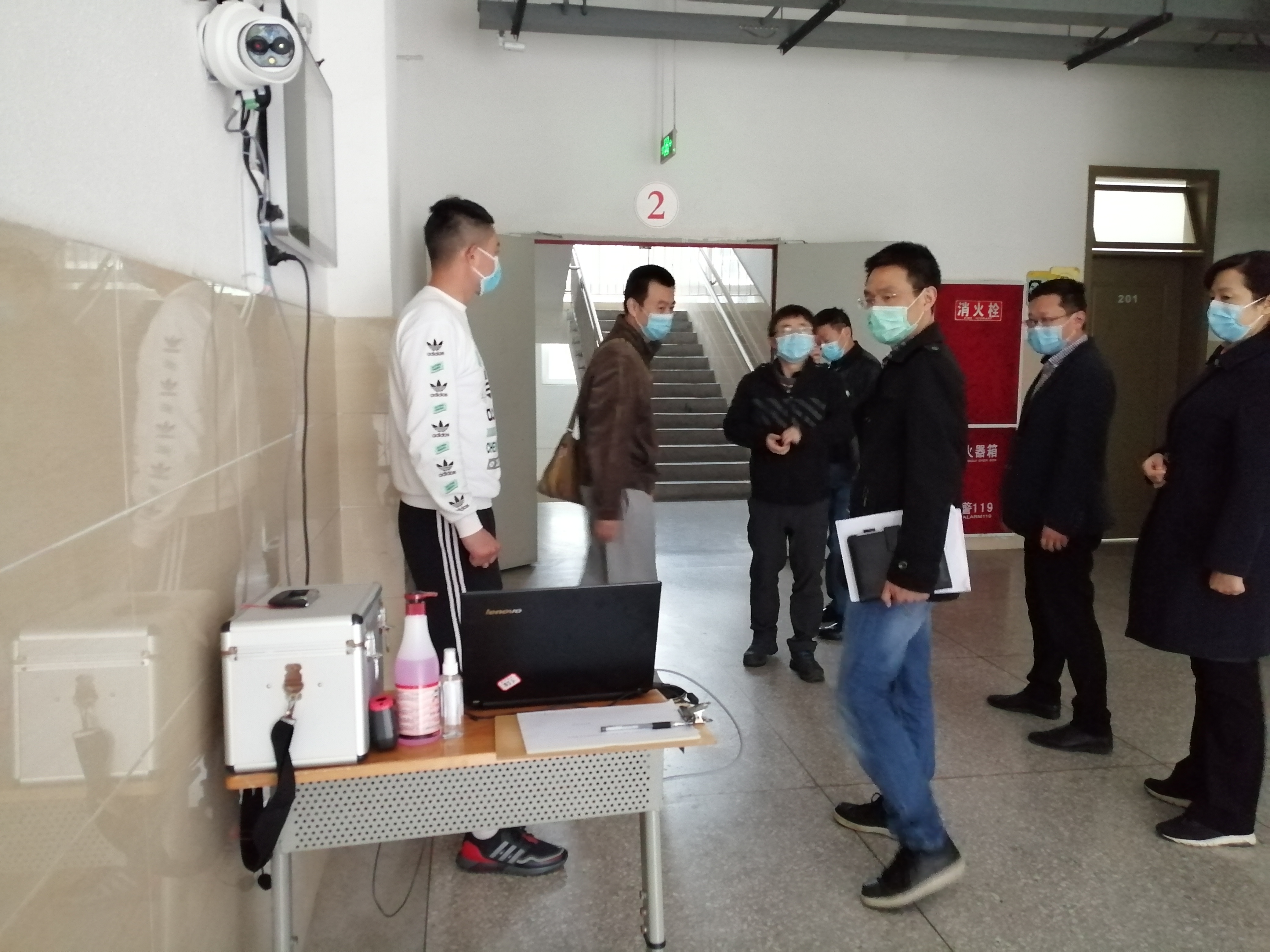 随后,考察组查看了宿舍区、隔离室、发热专门通道。卫建委李主任肯定了学校的四间隔离室是“高配”,并赞扬学校特意设置的发热专门通道线路合理,最大程度地降低了相互传染的风险。