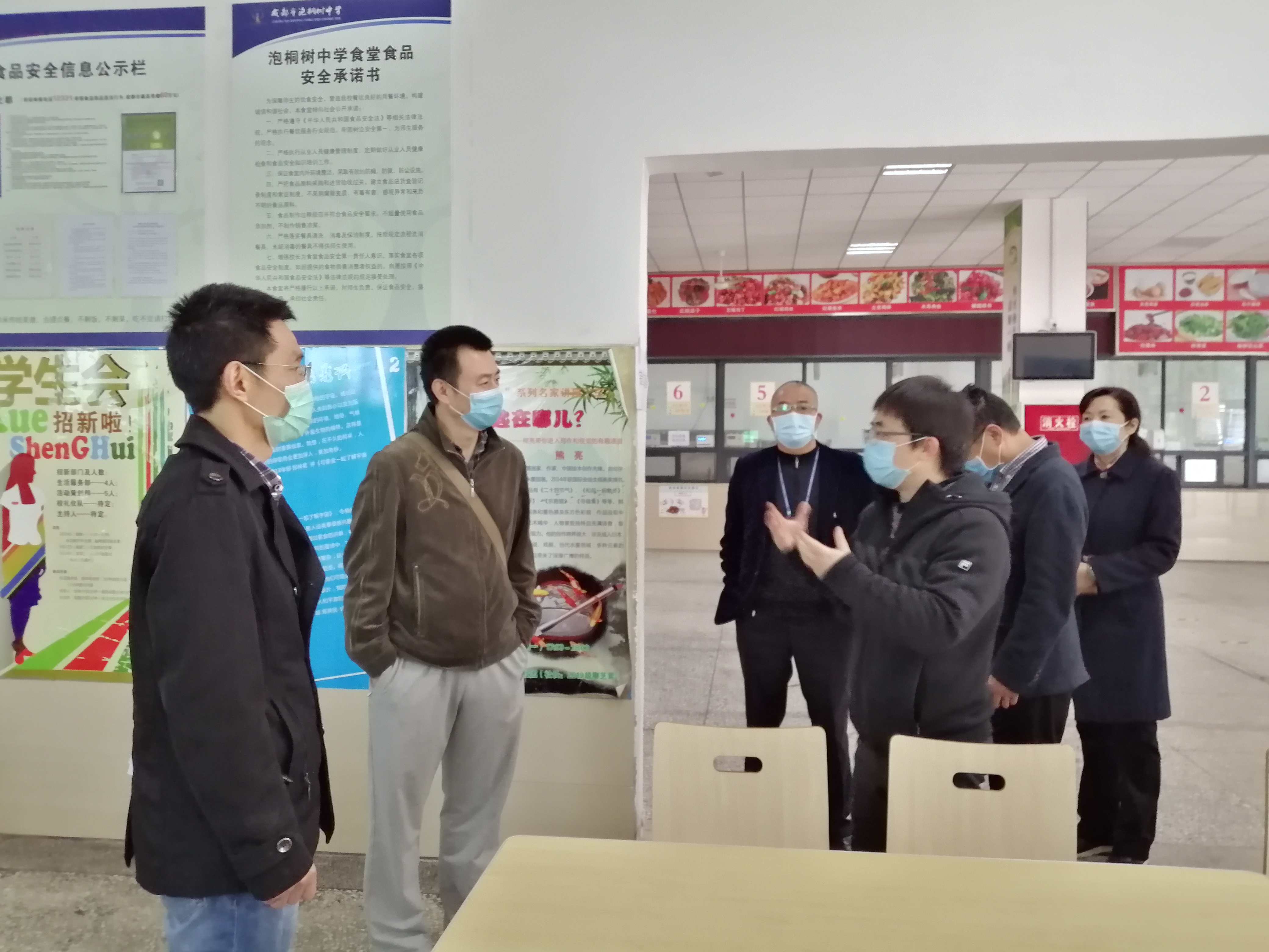 现场考察组在食堂视察工作