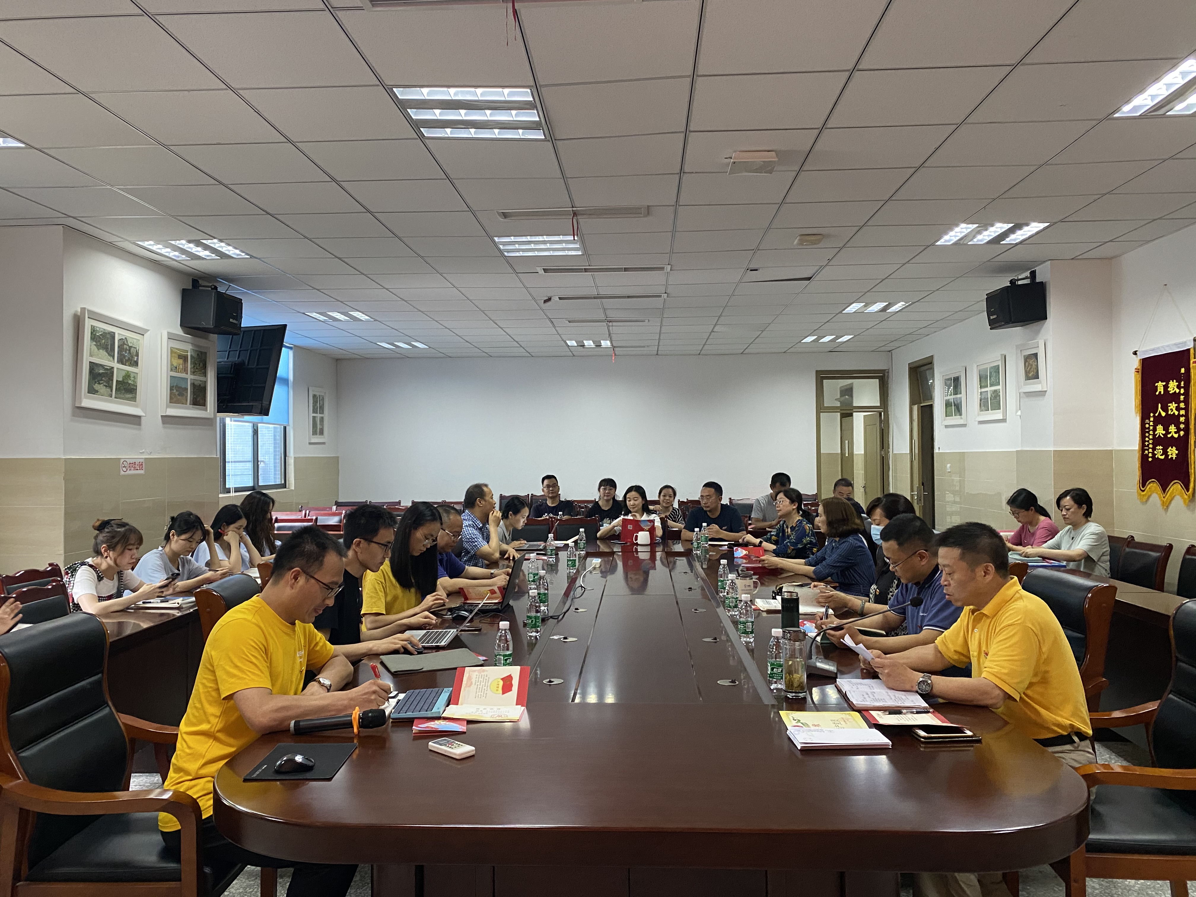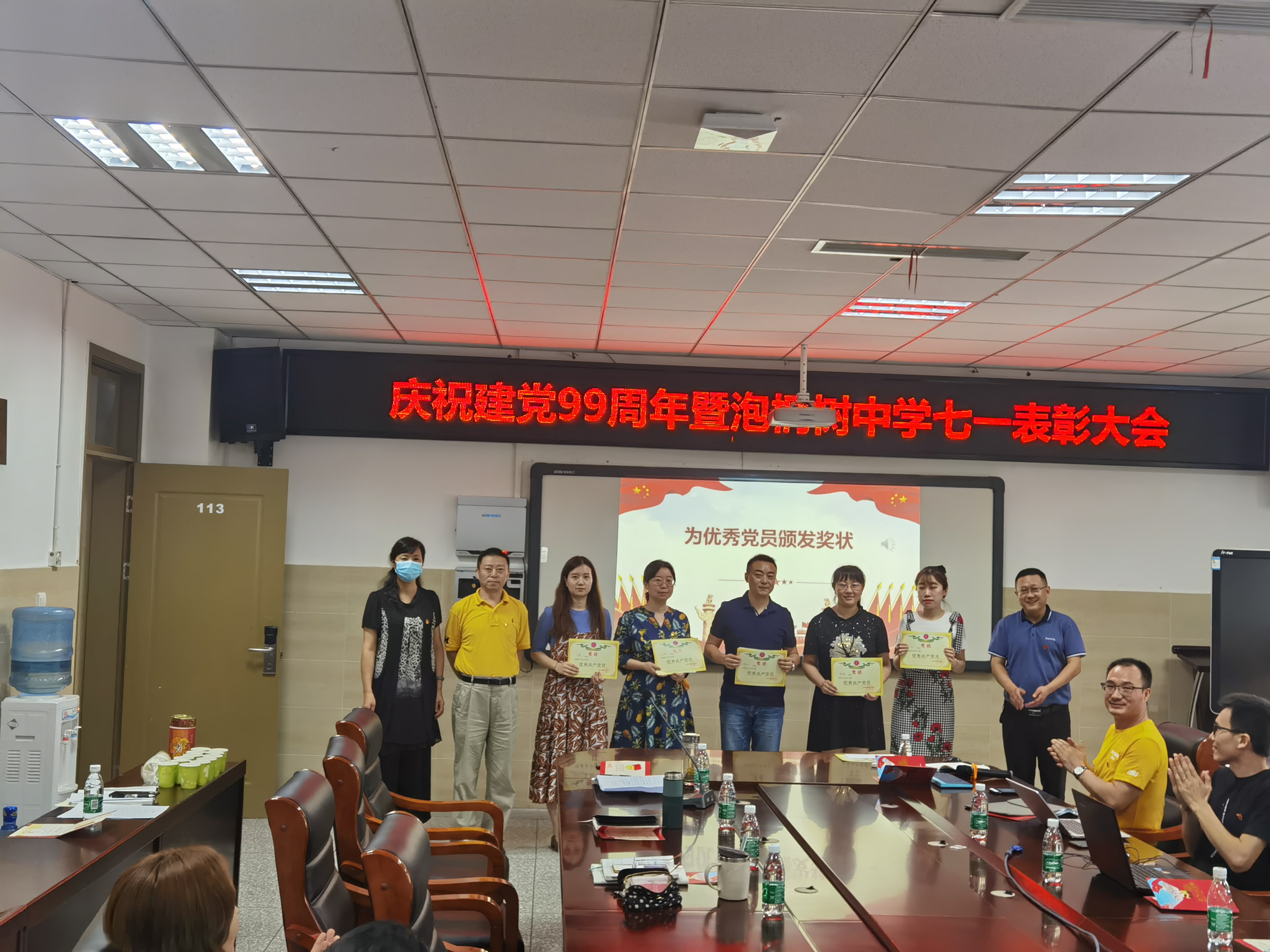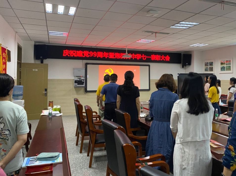 2020年7月1日,中国共产党建党99周年之际,泡桐树中学全体党员齐聚一堂,进行一年一度的表彰活动,共庆党的生日。