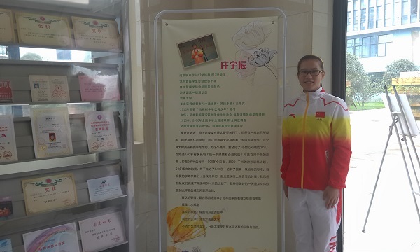 庄宇辰同学品学兼优,作为学校自主管理学院常规服务部部长,她工作中认真负责,是老师们眼中的好学生,同学们心中的好榜样,父母眼中的乖孩子。在紧张的学习期间,她一如既往地每天早上5:00钟就起床开始训练,就这样坚持了一年又一年。功夫不负有心人,她很快成为了国家游泳一级运动员,并且通过了古筝十级的等级考试。成功的背后,是她对生活的执著与热爱!