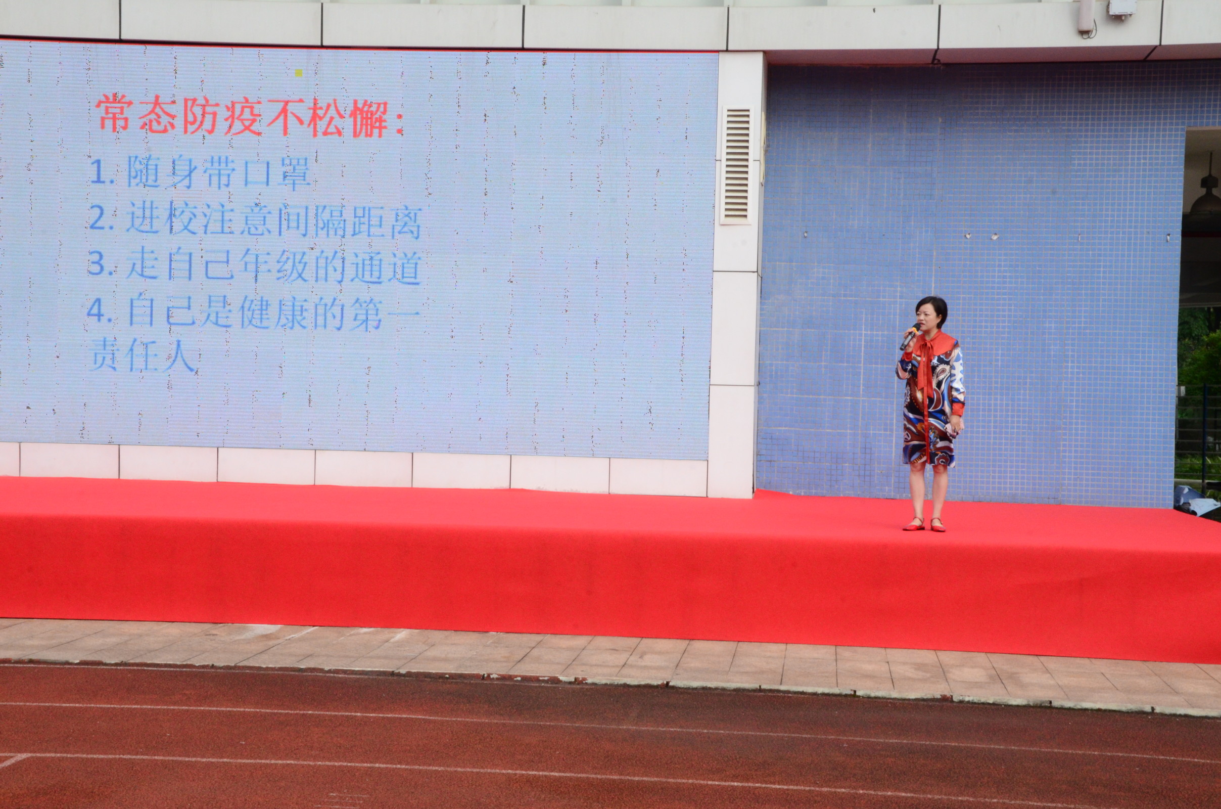 最后李霞霏主任再次强调了新学期,校内防疫的重要性,向同学们提出了校内防疫要求,提醒了同学们应当养成良好的卫生和生活习惯。