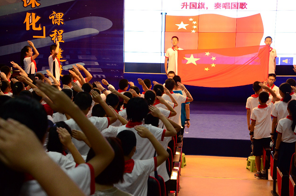 首先,2023学部新生第一次在多功能厅举行了庄严肃穆的升旗仪式。