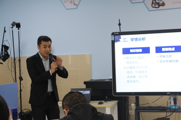 第一节课由成都市泡桐树中学的王冬老师带来了《天府文创—孔明锁的设计与实现》一课,王老师采用项目式教学、差异教学等教学方法,结合支持学习理论,通过产品调研、产品设计、产品生产、产品发布、产品链延伸、产品销售6个环节,进行课程设计。课程内容设计有趣、课程文化内涵深远、课程活动开展扎实。通过互联网等途径支持同学们进行产品调研;通过同学们的思考、讨论、交流,逐步优化产品设计;通过犀牛建模软件、印客软件、3D打印机来进行产品设计和生产;通过工具包来进行产品精修;通过拼装测试实现学生自评、生生互评、教师点评的多元评价;通过产品链延伸来迁移所学知识;通过搭建义卖平台,让同学们感受到劳动创造价值和帮助他人的乐趣。
