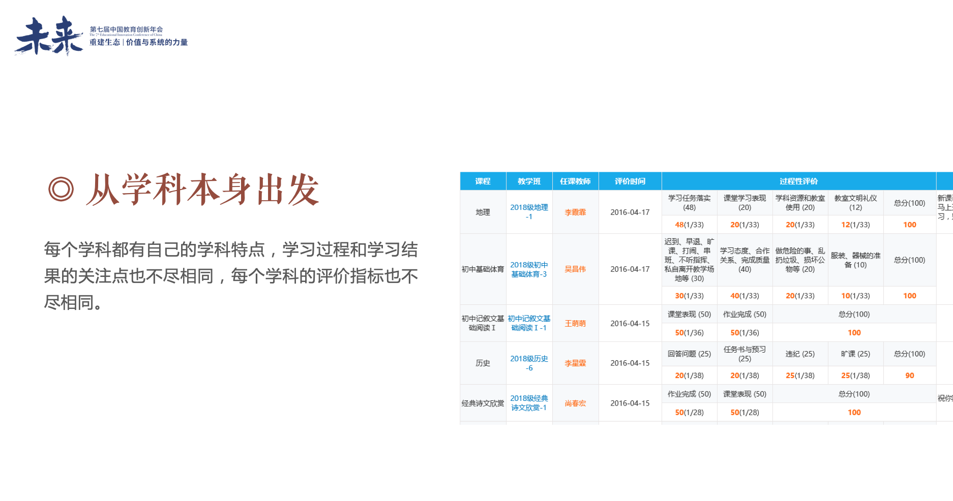 从学科本身出发;真实客观的课程;涵盖成长要素;让数据说话;人人都是参与者。泡中的评价体系基于这些原则真实反应学生的学习情况和行为规范,以评价引领学生自我发现、自主调节、自主发展,持续推进学生的个性成长。