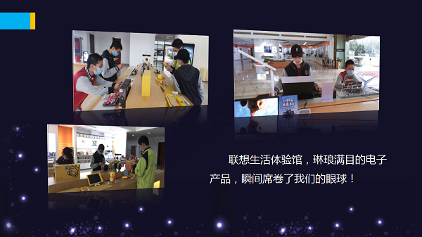 最后一站,我们来到了联想生活体验馆。这里琳琅满目的电子产品,瞬间席卷了我们的眼球。我最先看到的是最新上市的笔记本电脑拯救者Y7000,那性能杠杠的!王锦程在体验最新的联想电竞手机,向一敏却拿起了教育平板,李锦程找到了一台单机游戏机,我们在欢声笑语中享受着新时代科技产品带来的便捷和乐趣。