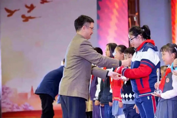 活动现场,嘉宾们为评选出的49位2020年成都市“新时代好少年”颁发荣誉。
