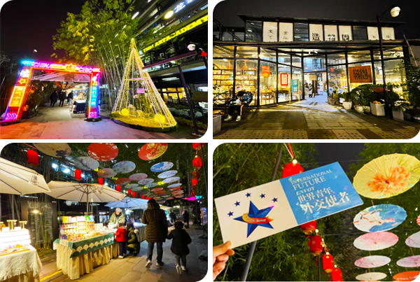 参观完球场,同学们来到了文创集市区域。发现一座座被绿竹环绕的茶馆、咖啡店隐藏于此,环顾四周,还有许多创意的店铺,彭老师给大家介绍了周边群楼里各式各样的美食餐馆、各种手作商店,更有很多不知名的创客在这里开创自己的事业。在这个有些慵懒却又动静相宜的空间里,组员们深深感受到了成都人独有的生活方式。