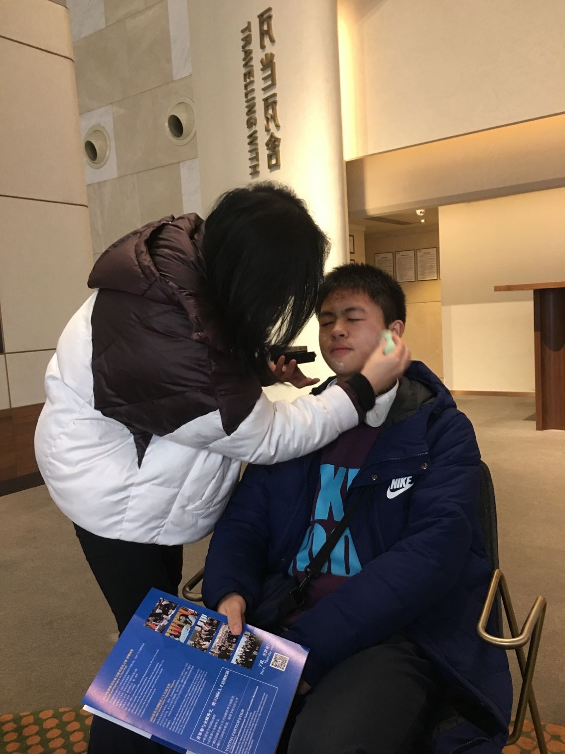 赛前精心化妆中