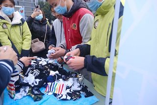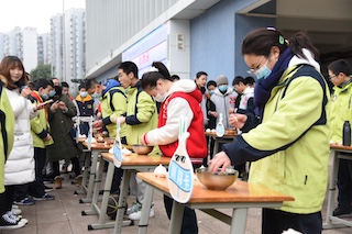 与此同时,规模最大,最精彩的两个活动也在进行,其中之一是“我是整理小能手”,在这里,劳动变得日常化:套被套,掖被角,叠衣服,折被子”同学们两两配合,放置被子的软垫一个又一个,从中截断操场的中心部分,在主席台旁,摆着七八张课桌,哦,那是剥蒜的地方,学校现场抽取“幸运观众”,被抽中者则前往剥蒜,冻红冻僵的手,戴着手套的手,白皙的手,深色的手形形色色,都飞快的剥下蒜皮,把大蒜掰成一瓣一瓣,再利落地放回碗里。劳动这一名词再此贴切了许多,同时也在同学们间受欢迎起来了。