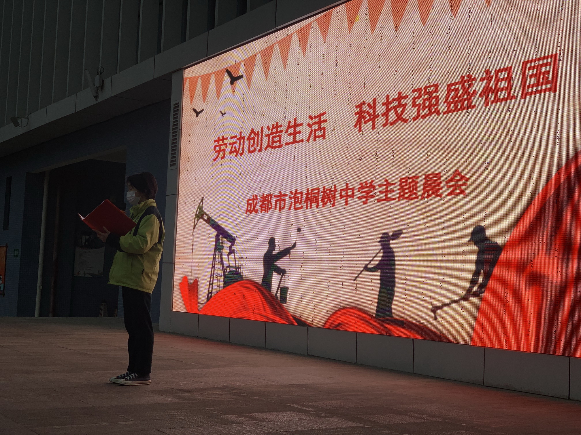 2020年是一个特殊的年份,我们共同经历了许许多多的考验,2020年时不幸的,新冠,山火,洪灾,一个又一个的天灾威胁着人们的生命;2020年又是幸运的,我们在操场上挥洒汗水,我们在蓝天下共同欢笑,我们在青春中努力奔跑。过去的一年,我们用自己的劳动创造着美好生活,创造着美好的未来。1月4日早晨,成都市泡桐树中学“劳动创造中国,科技强盛祖国”主题晨会在操场进行。