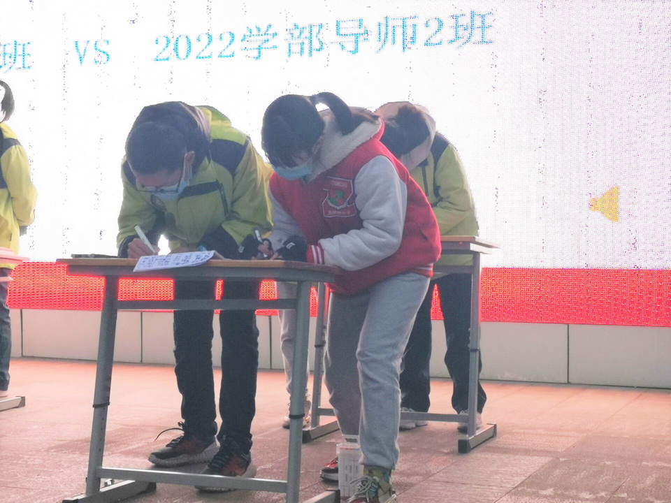 在“劳动最光荣”校园吉尼斯比赛中,初一,初二分别有一只队伍夺得了各自年级的冠军,今天他们在现场进行了最后的比拼,最后获胜的那支队伍,获得了泡桐文创活页本,他们也是首批获得此殊荣的同学,活页本上还有杨校长的亲笔签名和新年祝福。