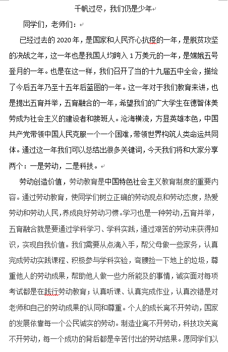 过去的2020年中,我们哭泣过,欢笑过,悲伤过;我们奔跑过,摔倒过,跳跃过;我们在奔跑中成长,在成长中改变,在改变中坚强。新的一年,新的起点,新的目标,在新的一年中我们共同进步,勇往直前,那么在新的一年中,老师对我们有什么期待呢?接下来杨校长为我们总结了旧年并展望新年。