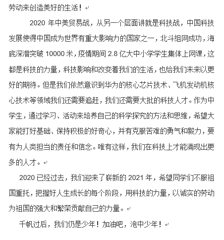 新的一年中,希望同学们更进一层楼,能够满怀少年的朝气,奔赴理想和未来。