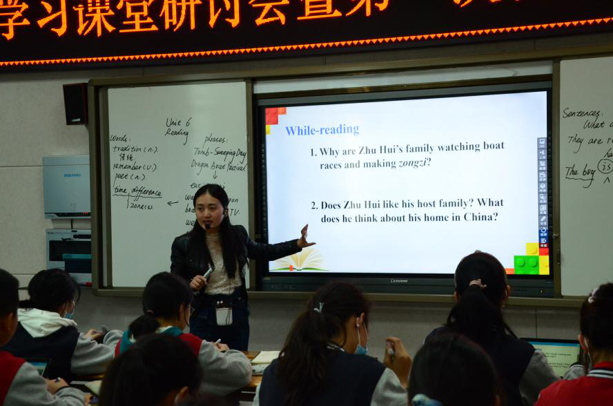 下午1点50分,活动正式开始,首先由薛源老师带来一堂英语阅读课。薛源老师用幽默风趣的语言,带领学生一同阅读端午节的习俗,课堂中,还为同学们通过视频、音频等形式,让学生们参与到课堂中来,课堂节奏紧凑有序,学生反馈及时有效。