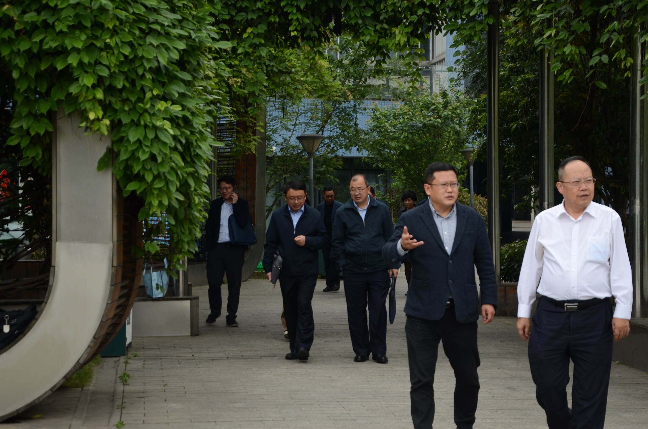 4月12日,教育部领导一行来访泡桐树中学,就我校教学常规和课业减负情况进行考察。杨超校长首先带领领导们参观了校园文化建设。
