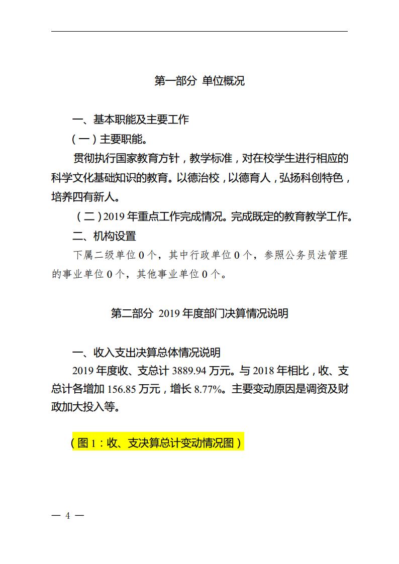 2019年度泡桐树中学部门决算公开