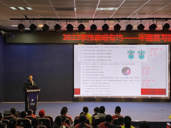 再是物理组阳飞老师。阳飞老师结合上次月考的错题,用简洁精炼的话语给出同学们复习物理的方法与建议。