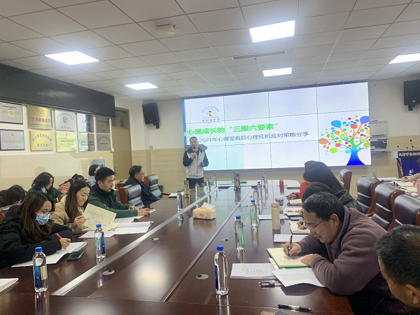 办公室王其明主任首先进行了《心理成长的“三圈六要素”——2021年心理普查后心理危机应对策略分享》,对我校学生心理测评结果做了分析。王主任指出,我校学生无论从性别上、较高风险、极高风险上与全国常模对比,泡中学生的心理健康水平均高于同期同类型学生。同时,王主任也分享了一些心理疏导方法给导师们,指导导师们更好地对孩子们的心理问题进行疏导。