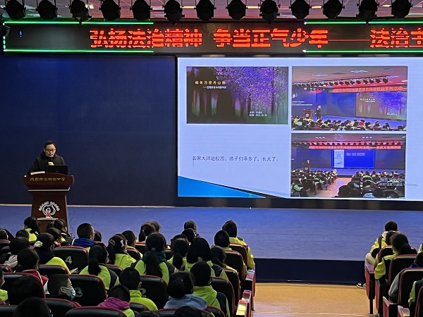 12月13日上午,同学们齐聚在多功能厅。举行了以“弘扬法治精神,争当正气少年”为主题的晨曦有约活动。