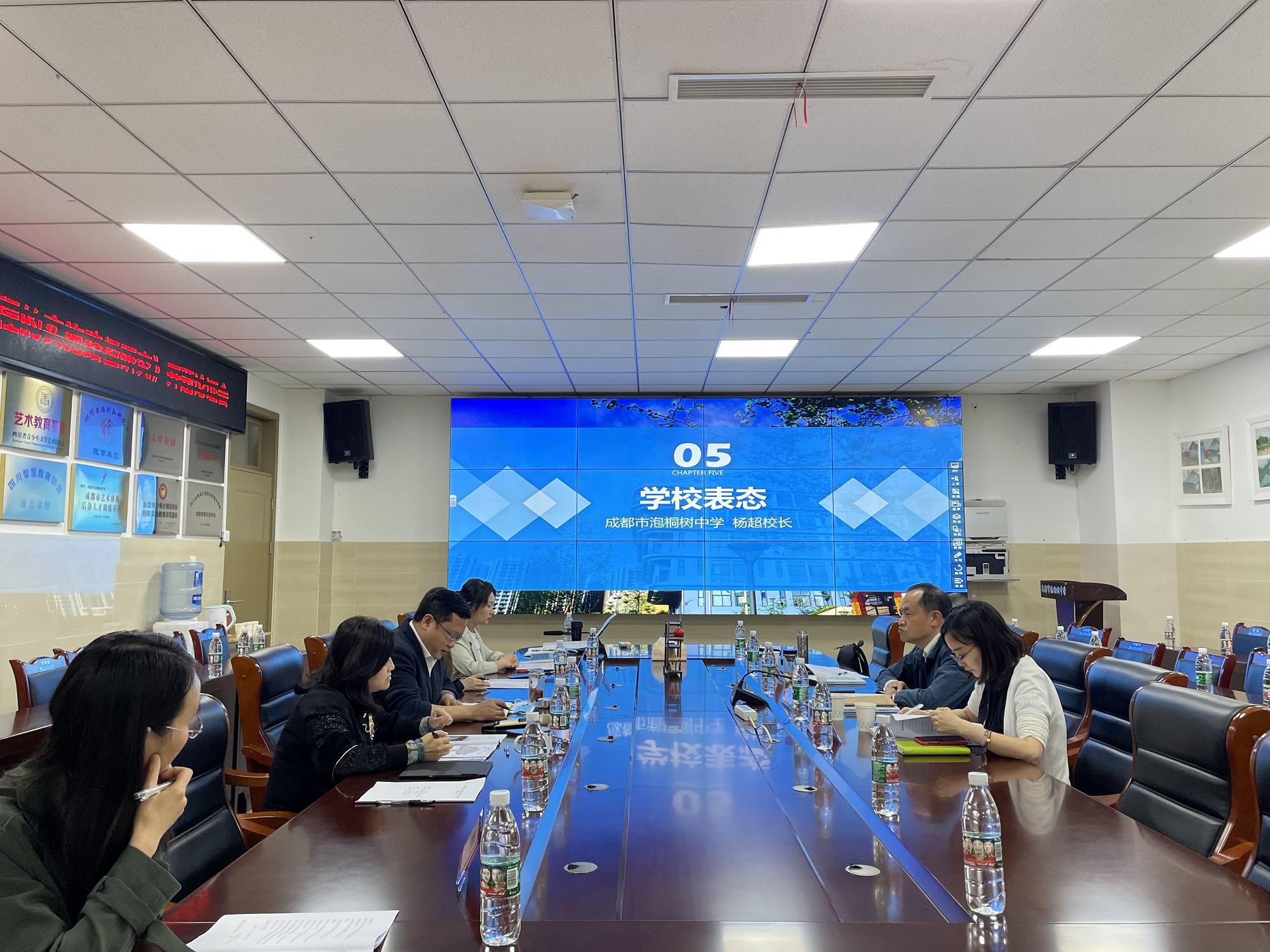 本次开题论证特别邀请成都市对外交流中心李全主任、成都市对外交流中心闵菲副主任和青羊区教科研叶剑副院长莅临现场指导,泡桐树中学杨超校长、李霞霏副校长和教师书院詹李梅院长同课题组成员刘丹老师、王其明主任和马赛老师参与了会议,办公室王其明主任主持会议。