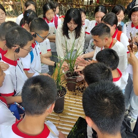 了如何栽种兰花,并由同学们代表我校亲手栽种了一株兰花并带回。