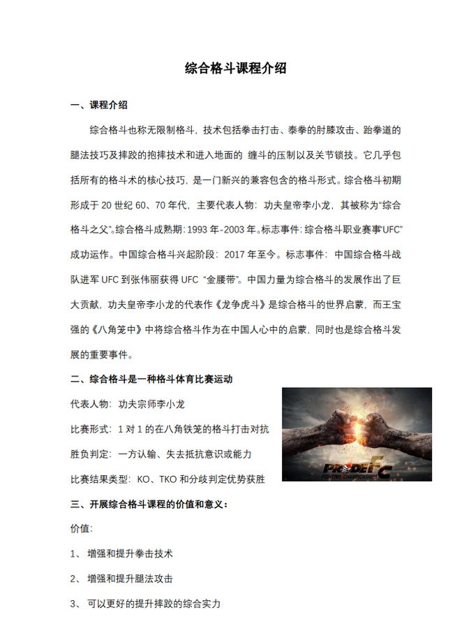 特色课程系列:综合格斗